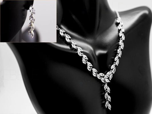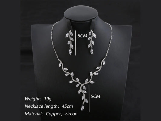Platinum-Plated Bridal Jewelry Set - Dainty Leaf Necklace and Earrings for Weddings and Proms