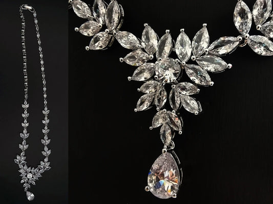 Crystal Necklace, Bridal Jewelry Set, Teardrop Necklace - Silver