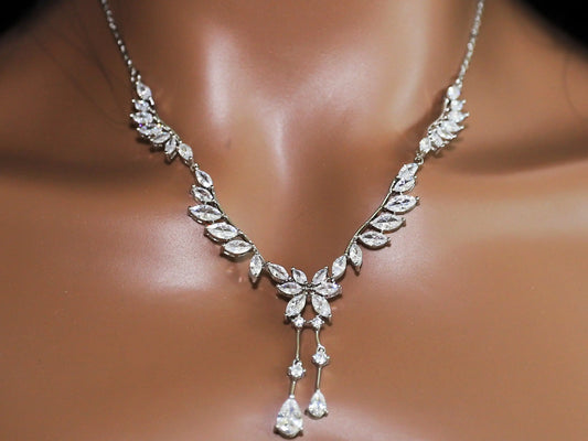 Silver Bridal Jewelry Set for Bride, Bridal Jewelry Set for Bride, Bridal Necklace and Earring Set, Silver Drop Earrings, Wedding Jewelry