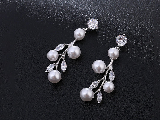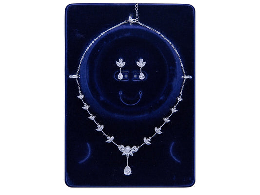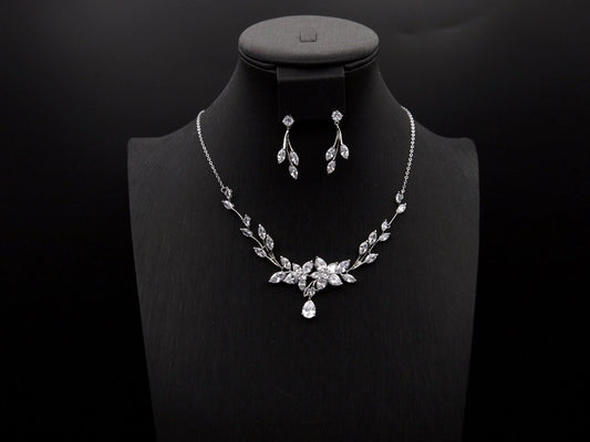 Simple Floral Vine Jewelry Set, Platinum Plated Cubic Zirconia