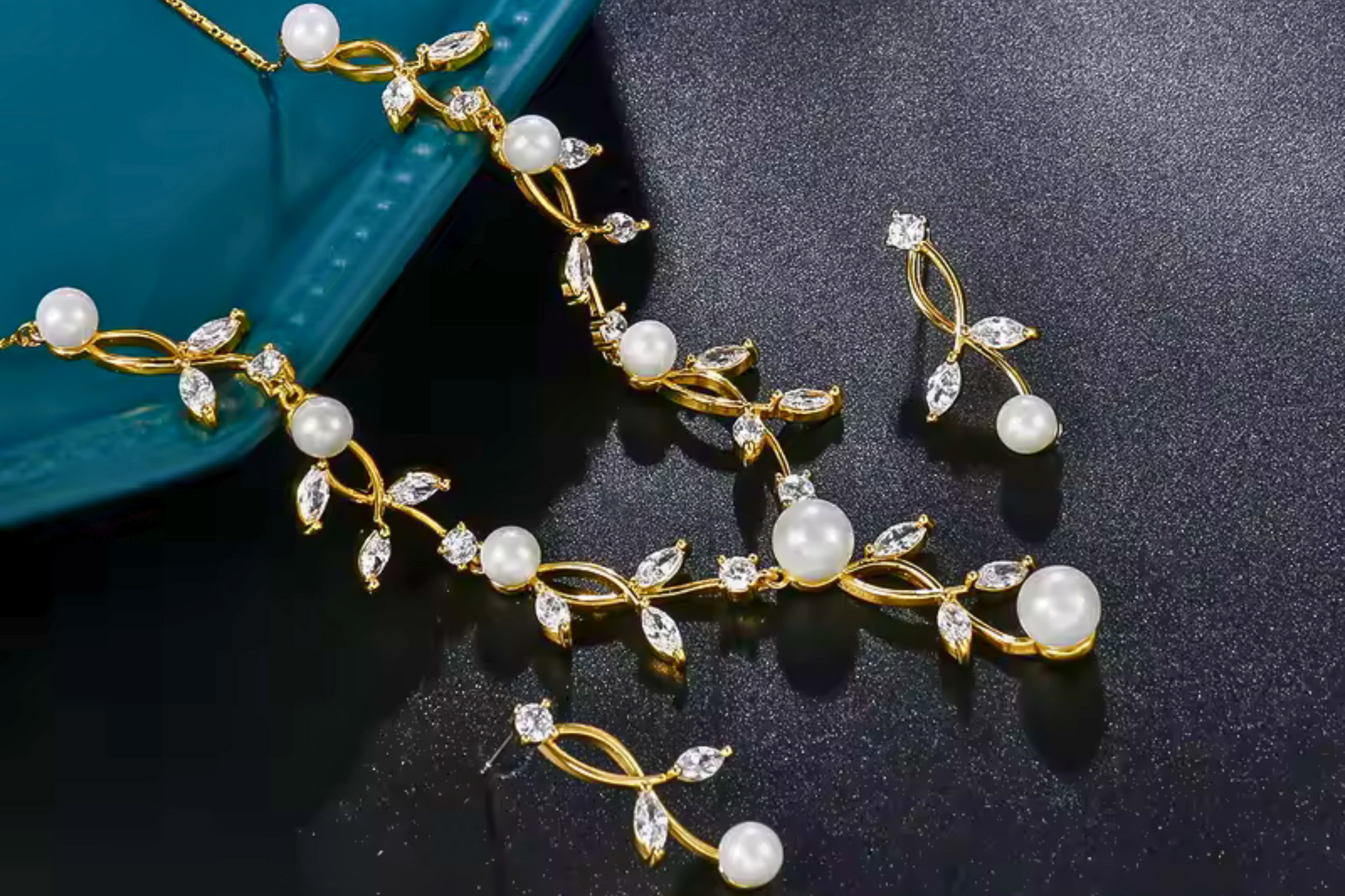 Gold Pearl Necklace Earring Set For Bride Trendy and Very Simple Jewelry Set
