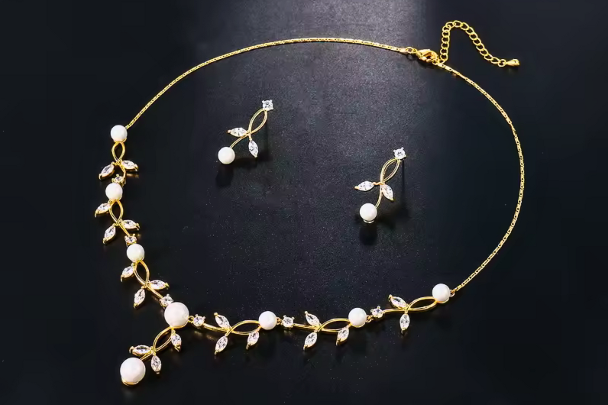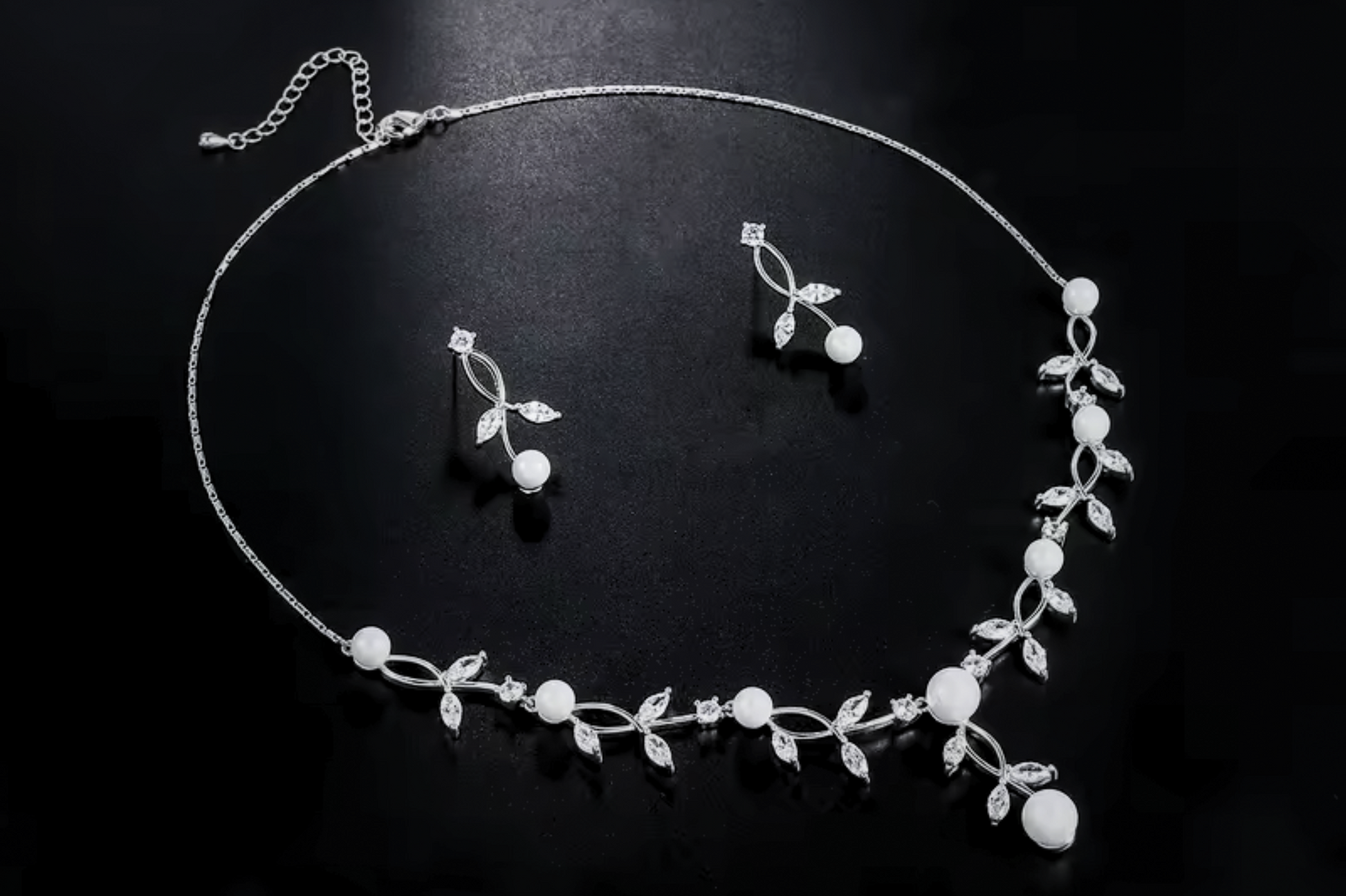 Discover sophistication in simplicity with our Elegant Pearl Necklace Earring Set! This exquisite bridal jewelry ensemble stands as one of our finest offerings, boasting a timeless elegance perfect for your wedding day, prom, or any upscale occasion.