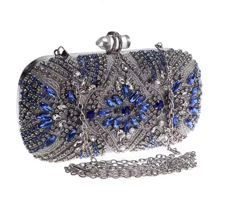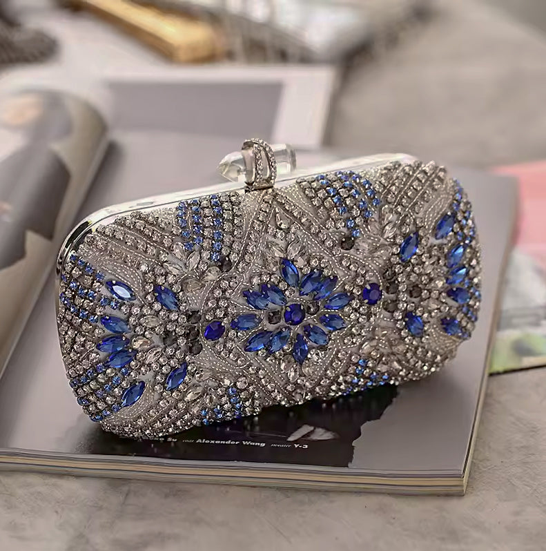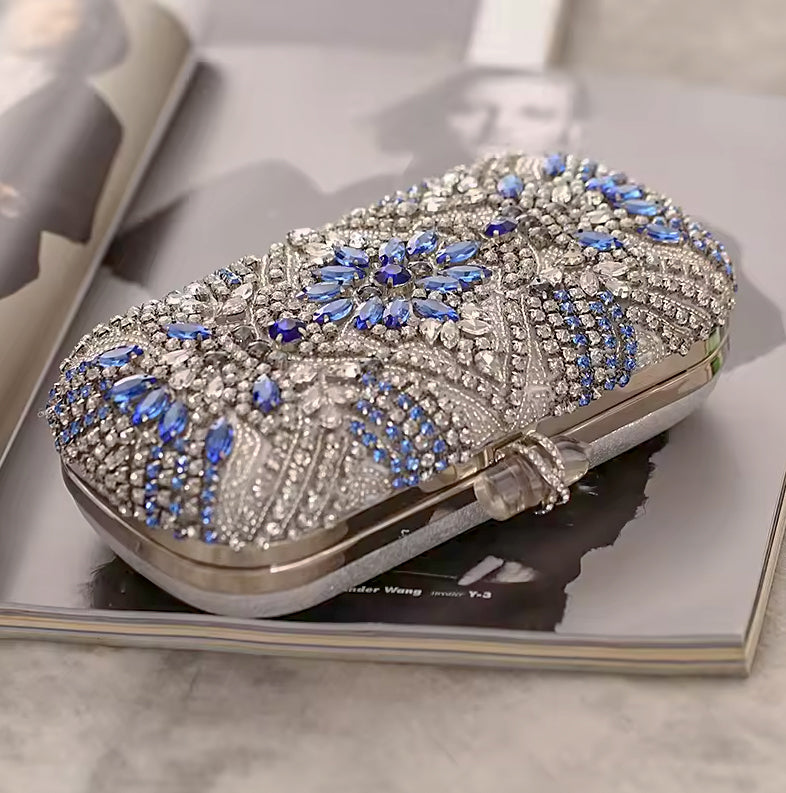 This elegant Wedding Clutch for Bride in Royal Blue. This sparkly crossbody purse is the perfect accessory to complete your bridal look.